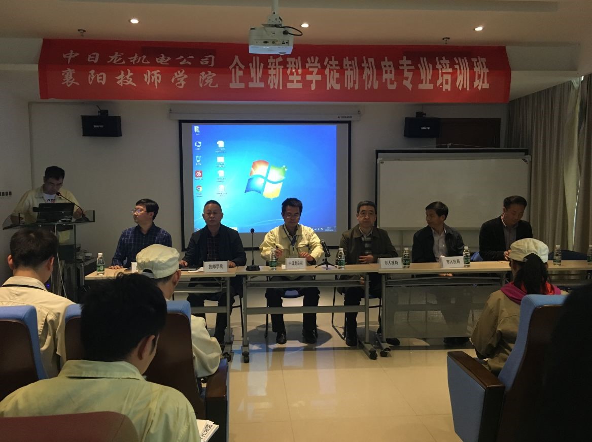 4月26日,由我司和襄陽技師學(xué)院聯(lián)合組織的機(jī)電一體化專業(yè)企業(yè)新型學(xué)徒制試點(diǎn)培訓(xùn)班正式開班。這標(biāo)志著襄陽市2017年企業(yè)新型學(xué)徒制試點(diǎn)工作正式啟動(dòng)。市人社局副局長宋明志、職業(yè)能力建設(shè)科科長耿元斌、市職業(yè)