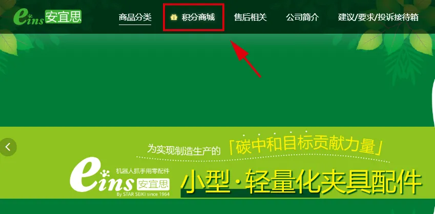 點(diǎn)擊eins商城網(wǎng)站上方導(dǎo)航欄“積分商城”